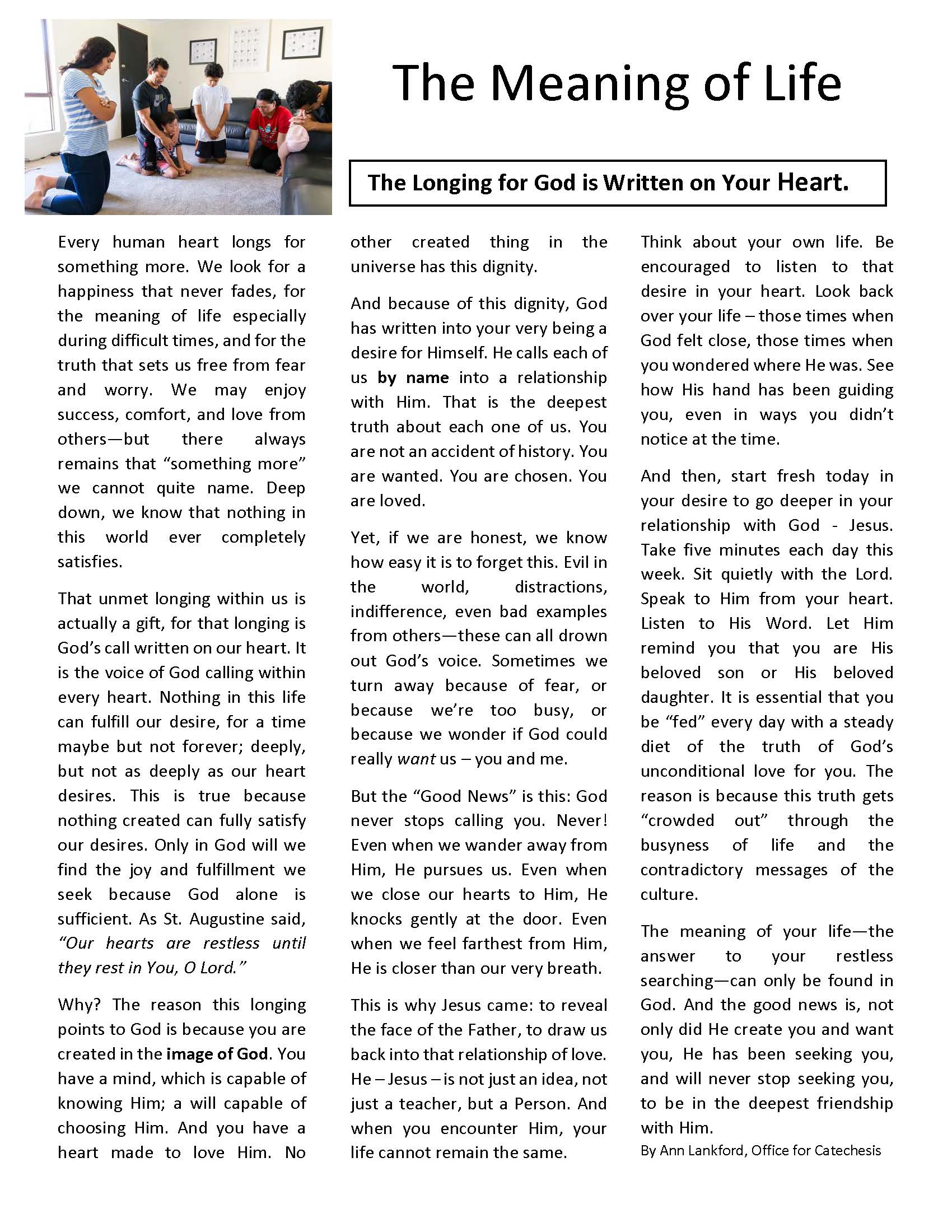 1) The Meaning of Life: The Longing for God is Written on Your Heart (PDF)